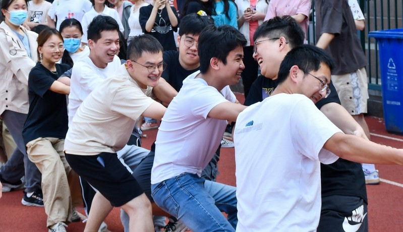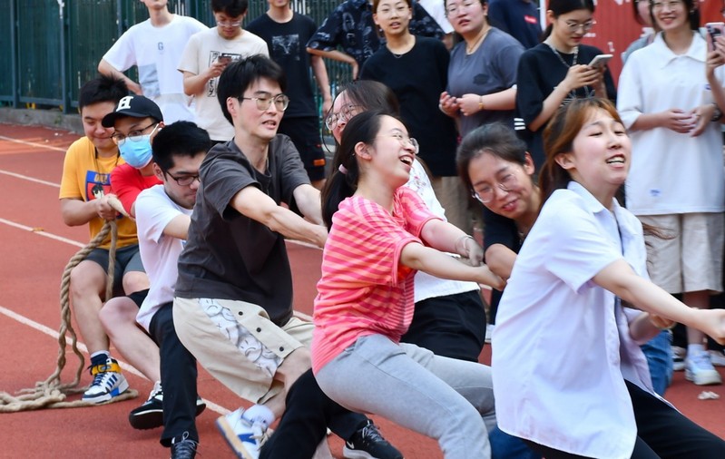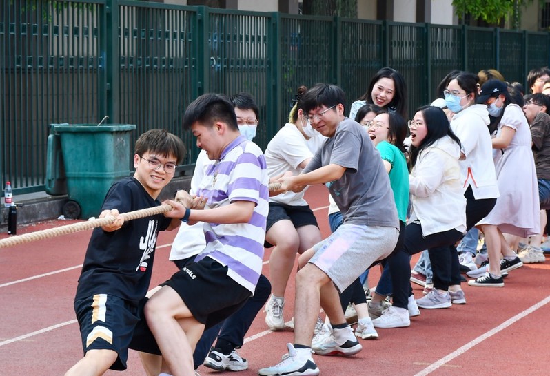 2022年5月25日下午,色情直播 2022届本科生毕业班于西康路校区操场举办拔河比赛。在毕业前夕,进一步增强学生之间的交流和协作,增进班级凝聚力和集体荣誉感。学院党委副书记沈国军、2018级辅导员顾钰恒及色情直播 全体2022届毕业生参加活动。
