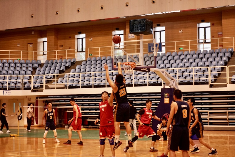 易边再战,学生队23号黄伟然突破重围,强硬对抗,接连打进三球,缩小比分差距。教工队凭借巧妙的战术配合,在1号郑金海的指挥下,4号彭伟多次跑出空位,1号郑金海弧顶发牌,4号彭伟底线中投打进。第三节比分定格在49:28,教工队大比分领先。